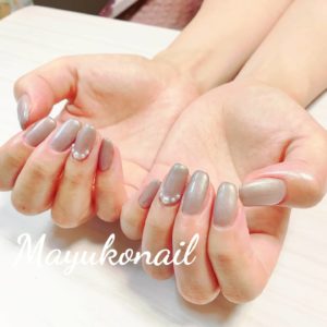 ワンカラーネイルにパールをのせて😊🙌