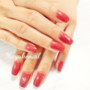 単色だけでもステキなネイルに😊